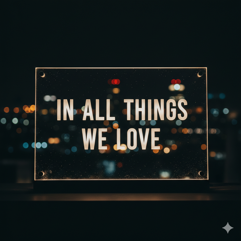 In All Things We Love. This phrase is on a lightboard in my bedroom. It’s the main principle of my ministry. It’s the war cry …